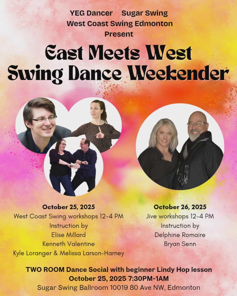 In between, we’ll have a stunning super social on Saturday night with WCS and Ballroom on the second floor, and sugar swing on the first floor!